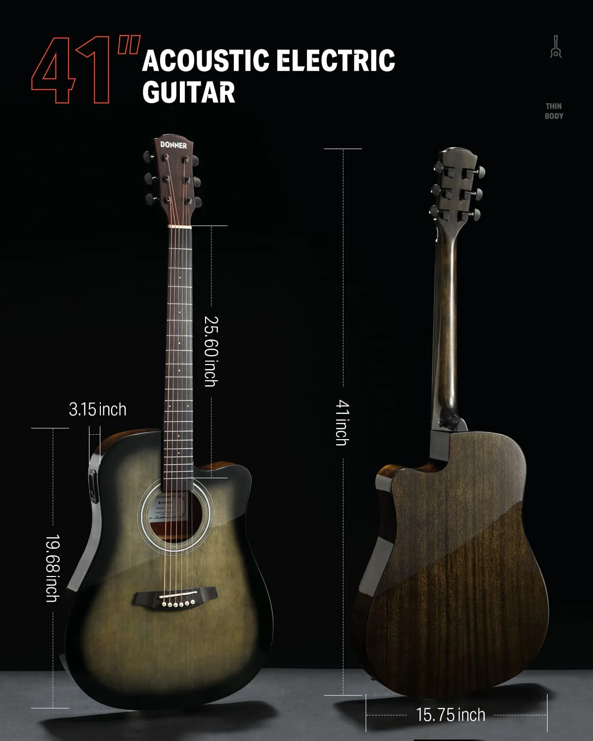 Donner Full Size Acoustic Electric Guitar with Amplifier 41 Inch for Beginner Intermediate